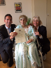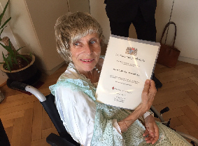 Wie zu sehen ist: Frau Miller war unendlich stolz diese Urkunde in ihren letzten Tagen ihres irdischen Lebens persönlich entgegennehmen zu können. So hat sich ihr allerletzter Wunsch erfüllen können.